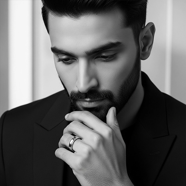 Explore clean and powerful platinum mens rings, made for daily wear or special occasions.