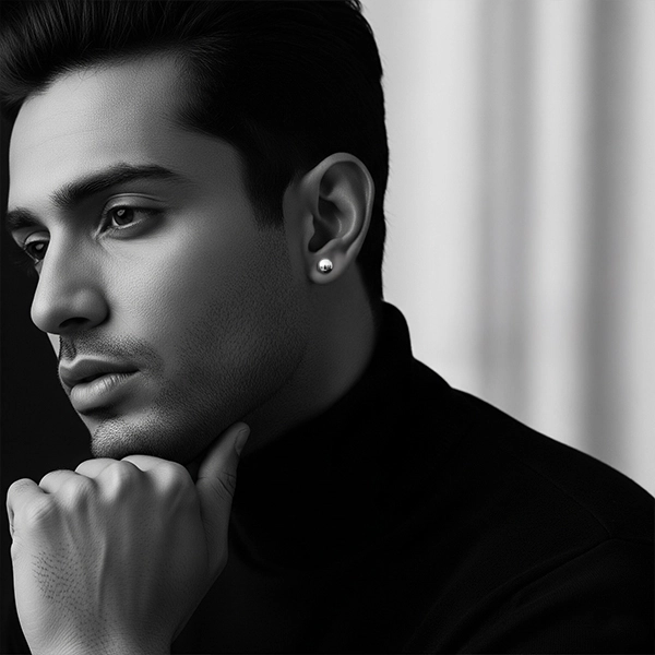 Add edge with bold, sleek platinum earrings for men — a contemporary classic for the modern man.