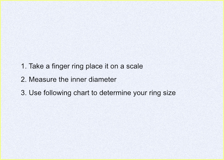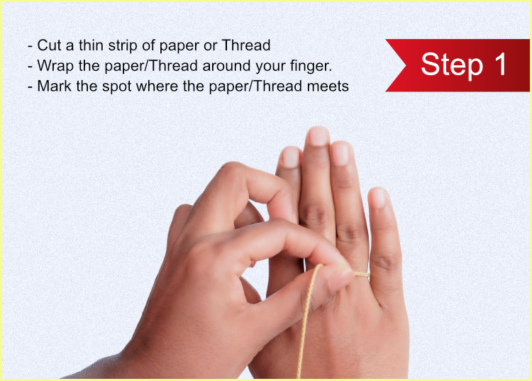 Find your perfect ring size within few minutes with the help of the following image and chart. You can use a tape are a string to measure the area that will be occupied by the ring. After a complete circle make a mark or measure the inches of the string & determine your ring size to the closest match. Kindly note the following size is Indian.